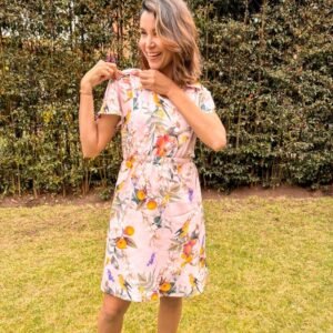 Vestido Mujer Florece Rosa Manga Corta
